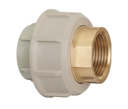 Муфта разборная переходная PP-H / латунь, d - муфтовое окончание для раструбной сварки,; R - окончание из латуни с внутренней резьбой, уплотнительное кольцо из EPDM