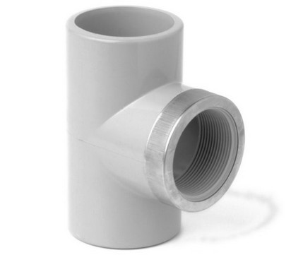 Тройник 90° с усиливающим кольцом из нержавеющей стали; D-муфтовое окончание под холодную сварку; R - внутренняя резьба