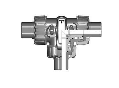 Трёхходовой шаровой кран TKD DUAL BLOCK ® с втулочными окончаниями для раструбной сварки, метрический стандарт, шар -L-типа