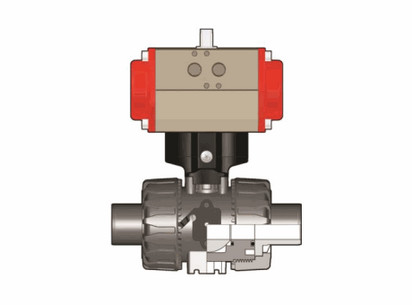 Шаровой кран промышленного применения Dual Block ®c нормально-открытым (НО) пневмоприводом, c удлиненными патрубками из PP-H SDR 21 (CVDM) для стыковой сварки