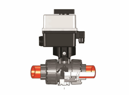 Шаровой кран промышленного применения Dual Block ® c электрическим приводом 24V AC/DC, c муфтовыми окончаниями для раструбной сварки, метрический стандарт